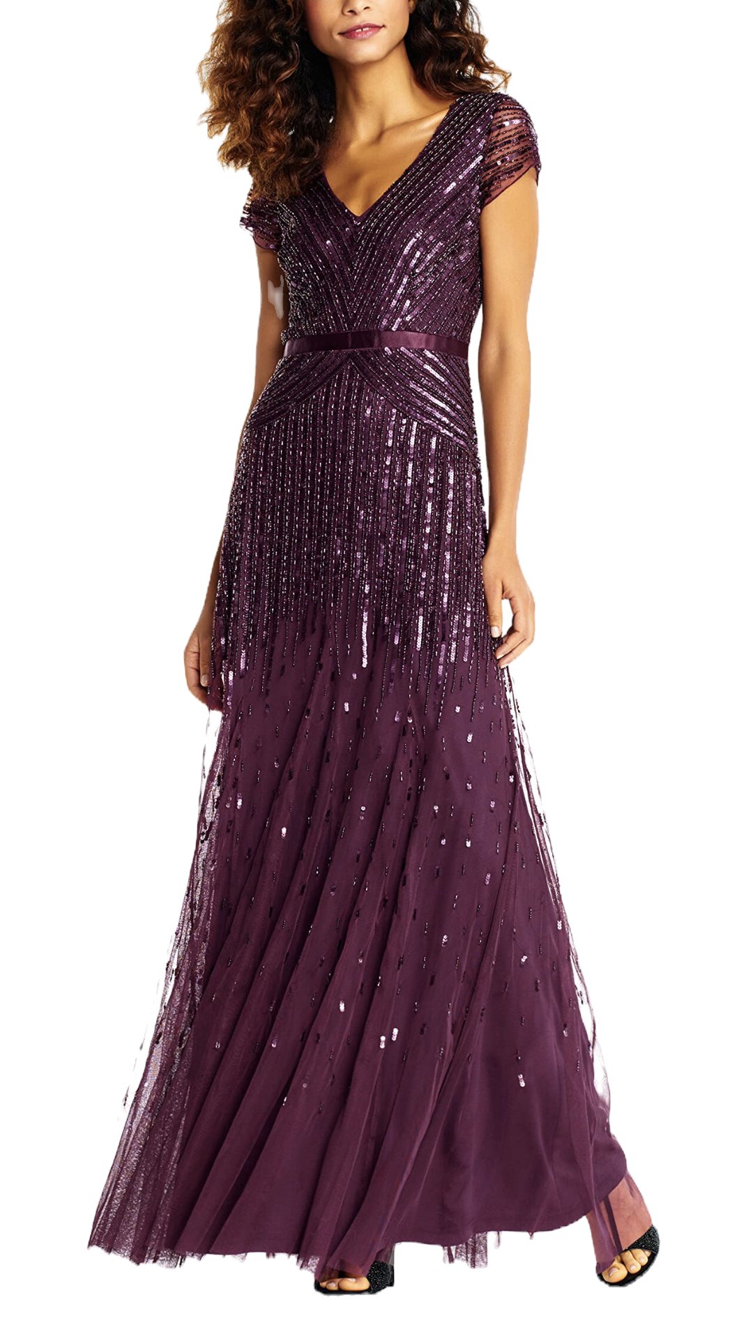 Adrianna Papell Beaded Cap Sleeve Gown in Cassis