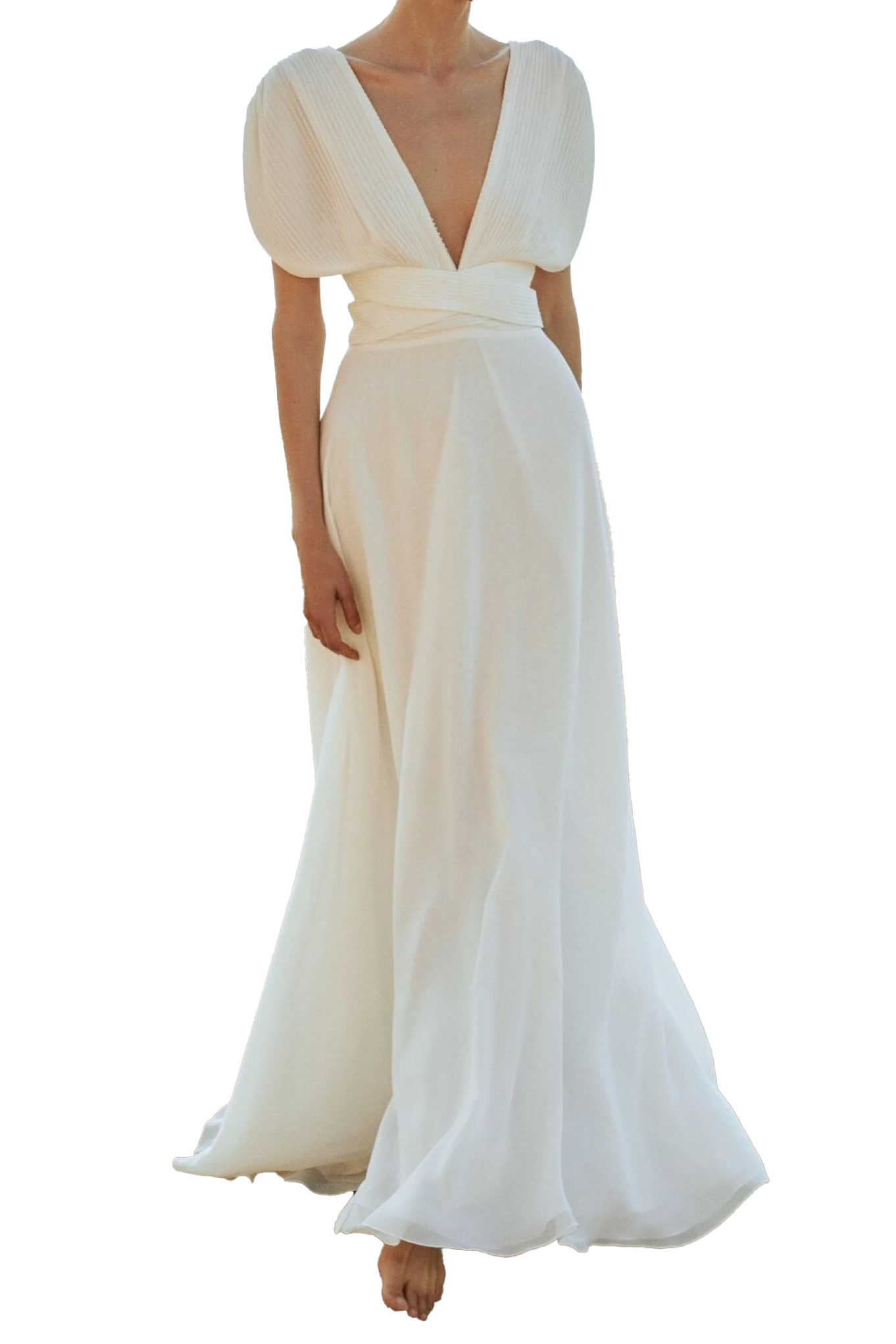 Liretta Sunrise Pleated Puff Sleeve Gown in White