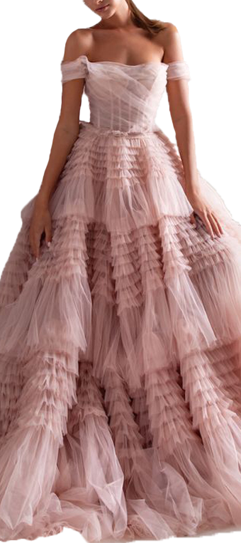 Milla Nova Mackenzie Tiered Off Shoulder Gown in Pink